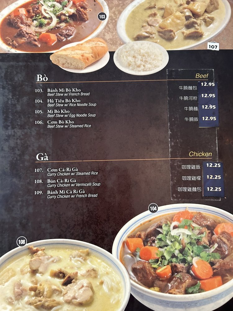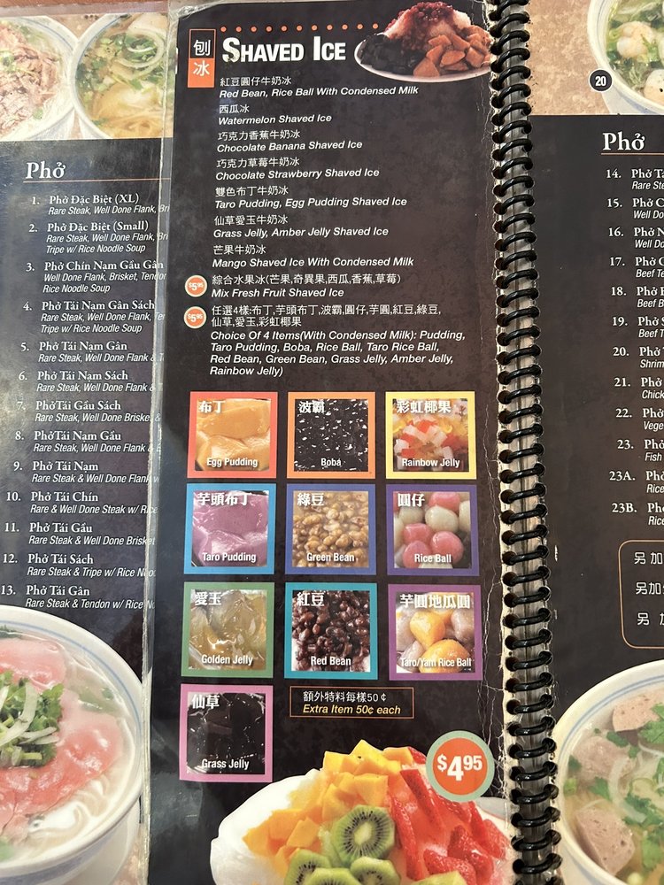 Pho Vinam Menu